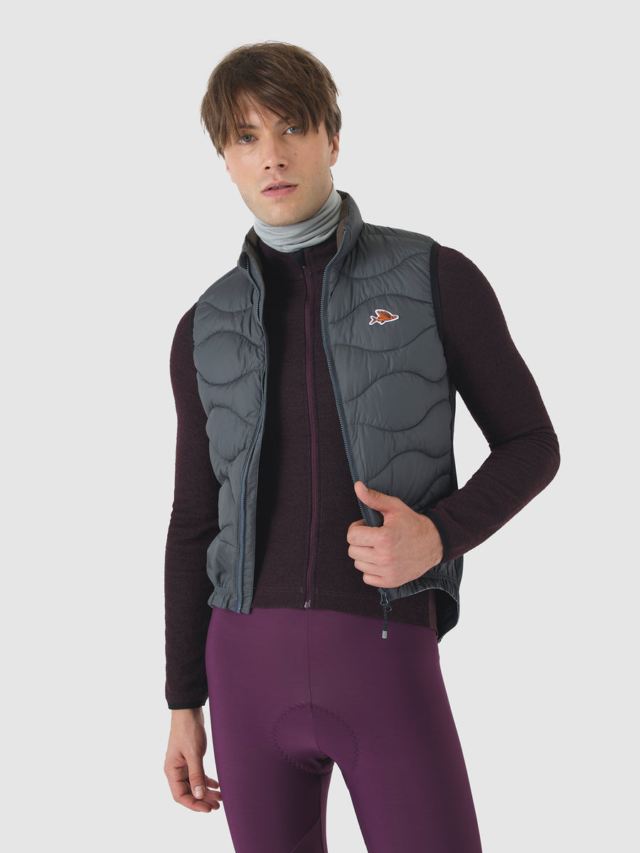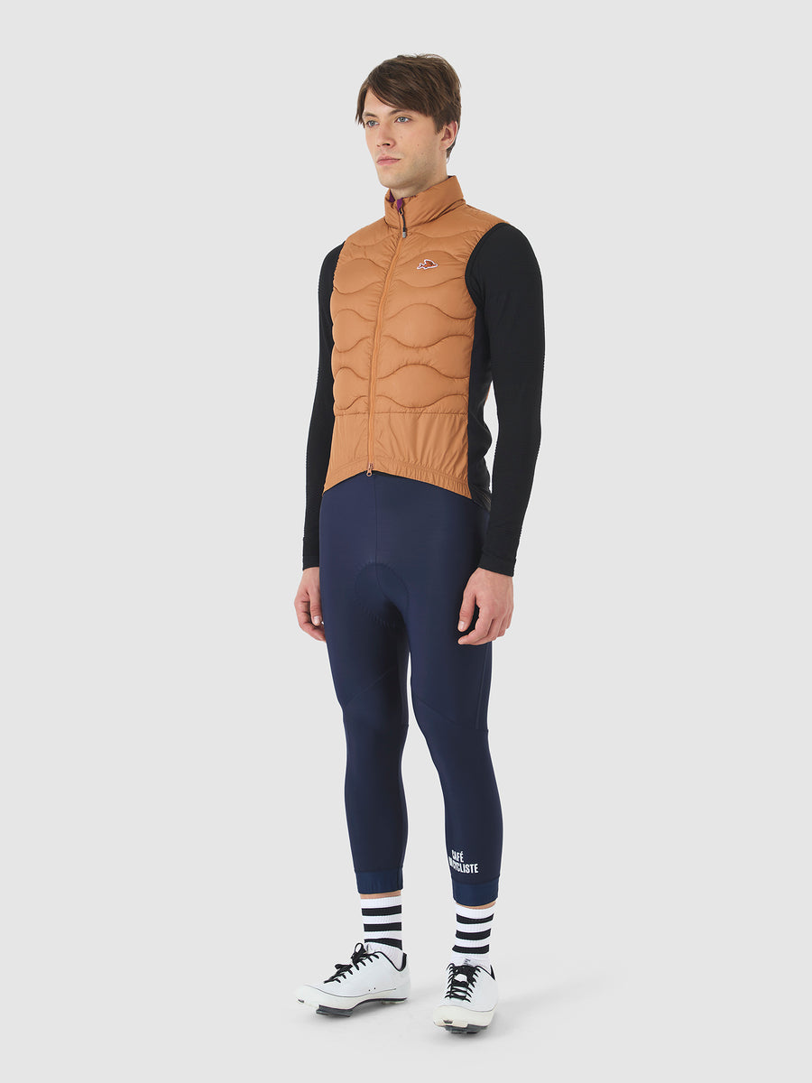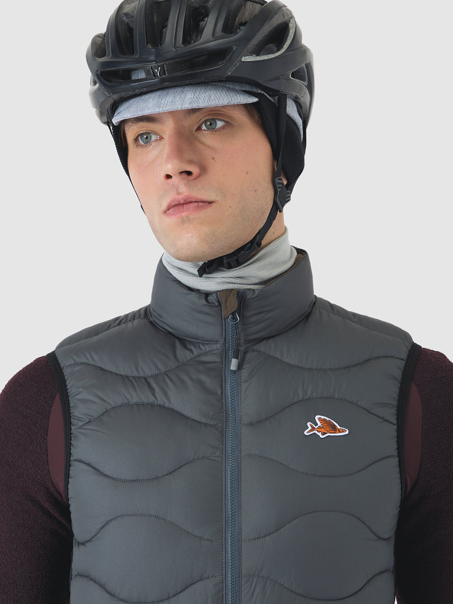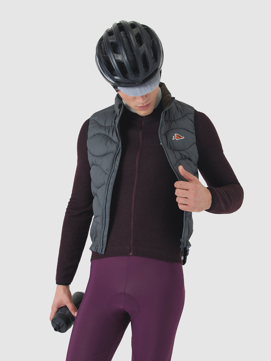 Alexia provides serious wind-stopping power and thermal insulation, using synthetic Primaloft ThermoPlume to deliver proper protection that packs down into a jersey pocket. Stretch side panels produce a close on-bike fit and slim silhouette, while the water-resistant outer shell is made from recycled fabrics. A large zipped rear pocket doubles as a stuff sack, and a two-way zip completes the package in signature Forever Outsiders style.
