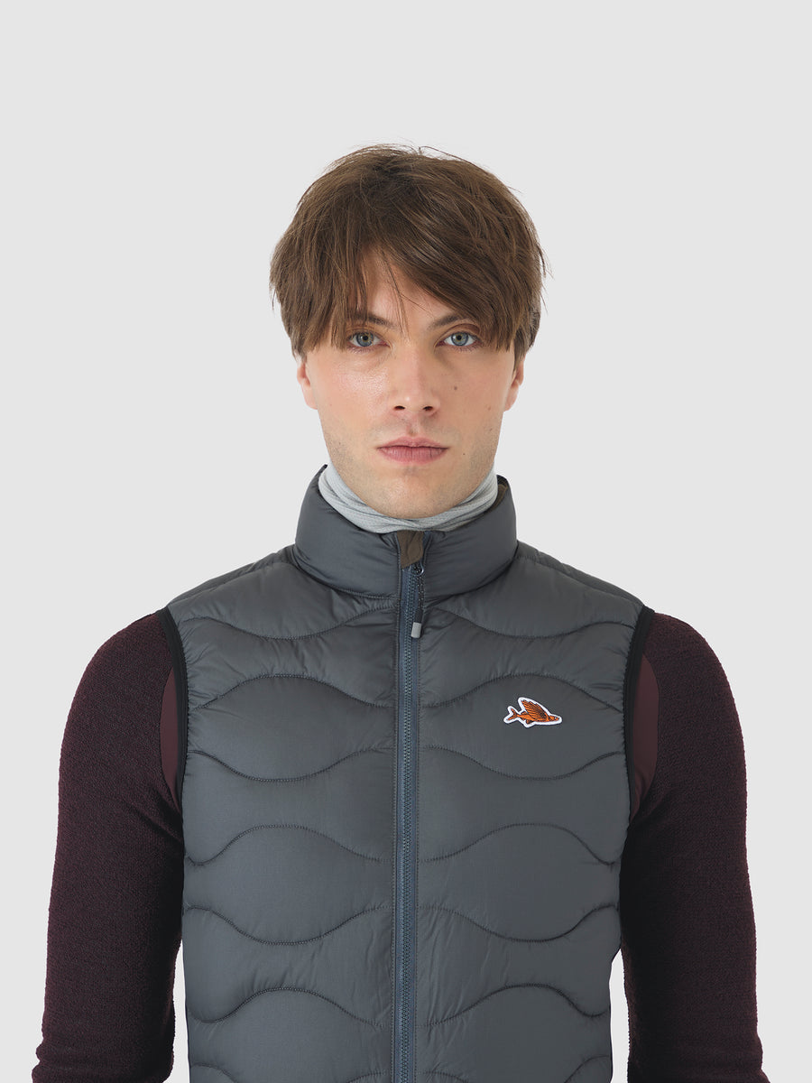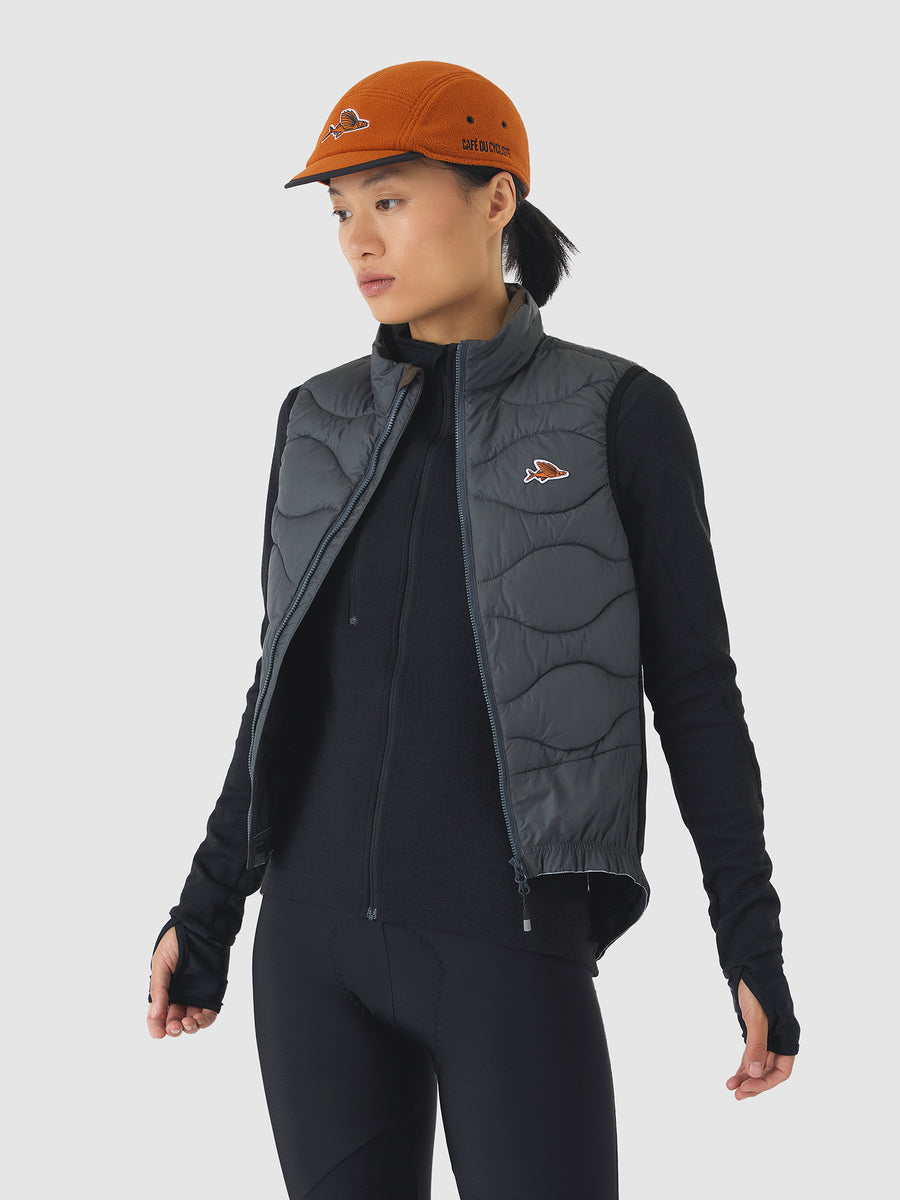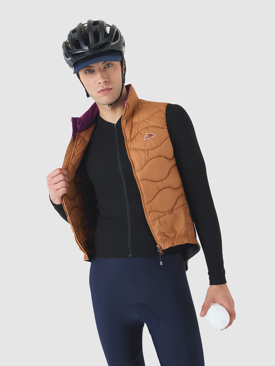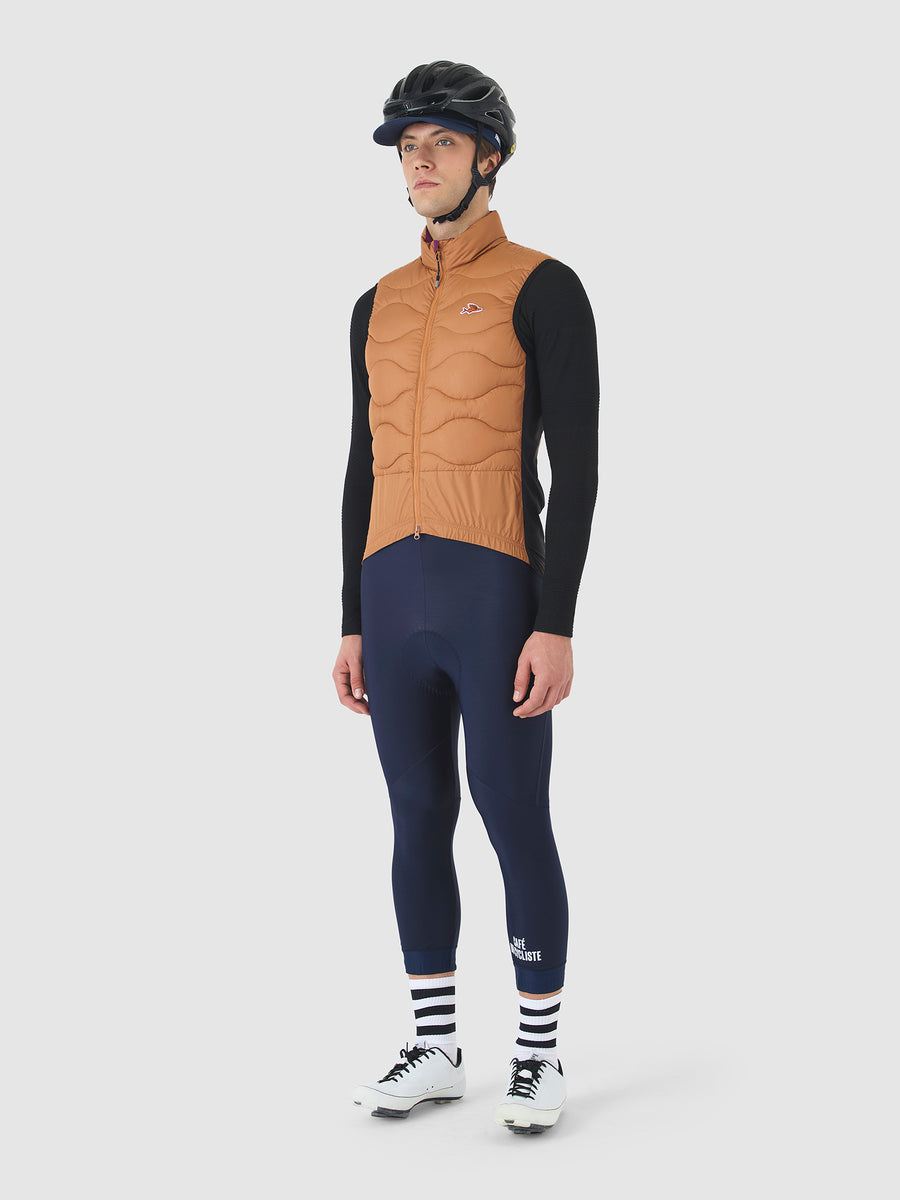 Alexia provides serious wind-stopping power and thermal insulation, using synthetic Primaloft ThermoPlume to deliver proper protection that packs down into a jersey pocket. Stretch side panels produce a close on-bike fit and slim silhouette, while the water-resistant outer shell is made from recycled fabrics. A large zipped rear pocket doubles as a stuff sack, and a two-way zip completes the package in signature Forever Outsiders style.