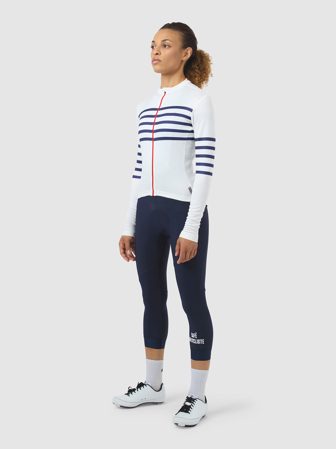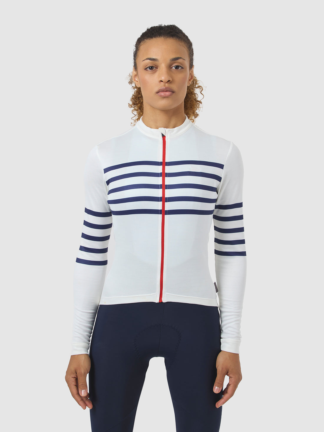 Featuring signature styling and modern detailing, Claudette is the long-sleeve version of our iconic Breton jersey. It combines extreme comfort with fantastic performance across a range of conditions. The high-wicking, fast-drying merino blend is super soft, and keeps you cool and dry when you're pushing to the limit, while still providing all the warmth necessary when the temperature drops. Built for all-day adventures, added strength and stretch keep you looking good across a full range of movement on the bike.