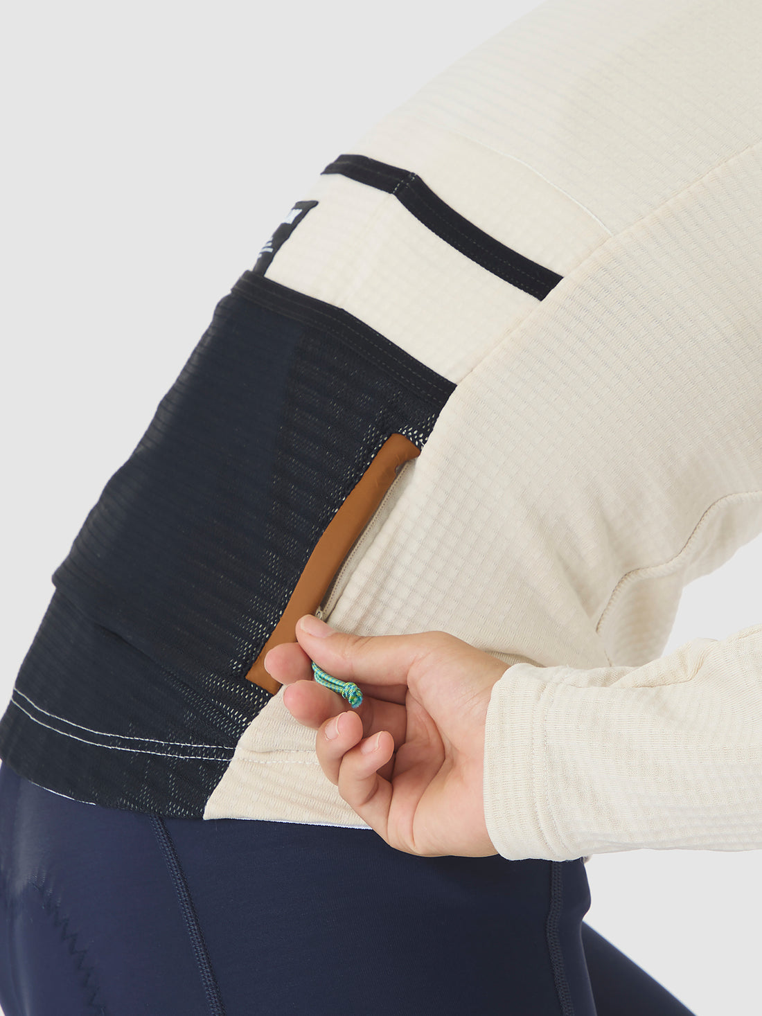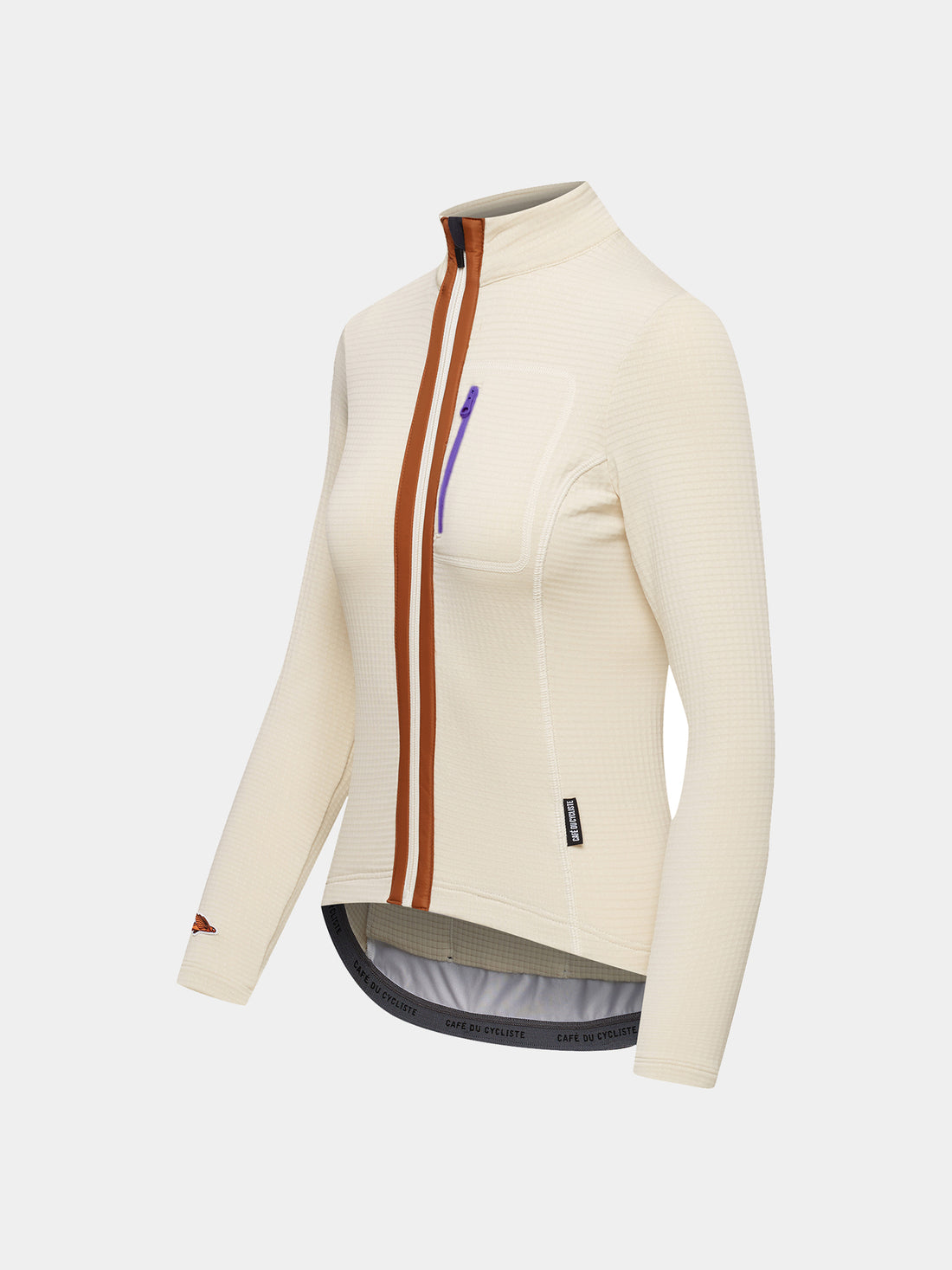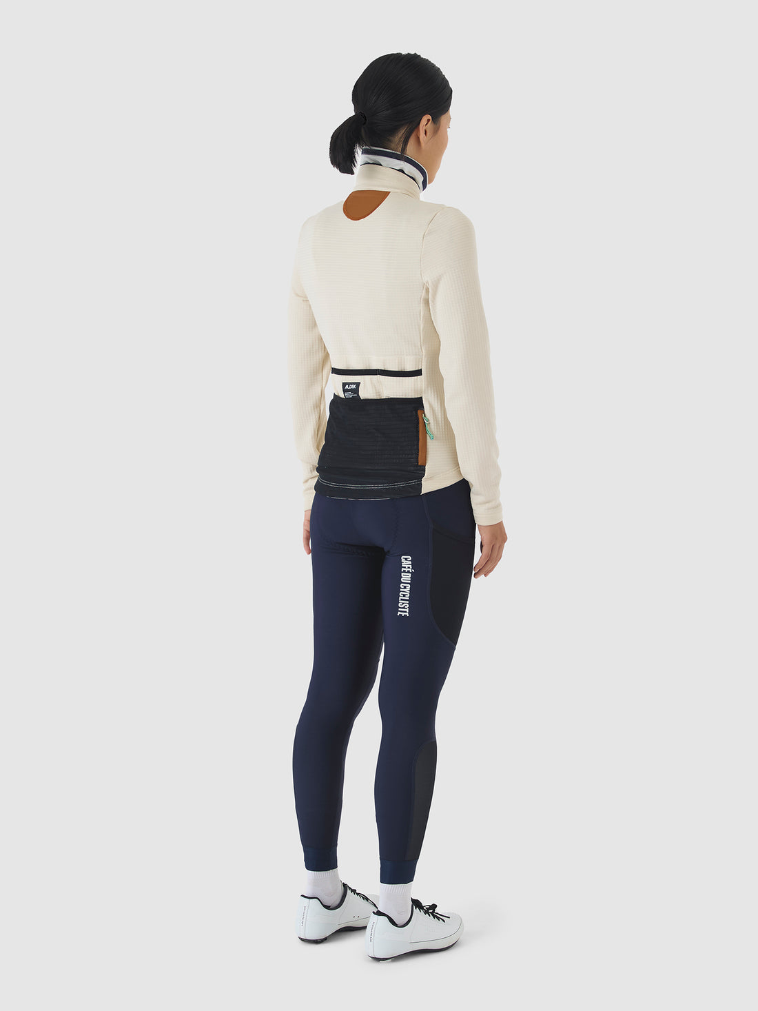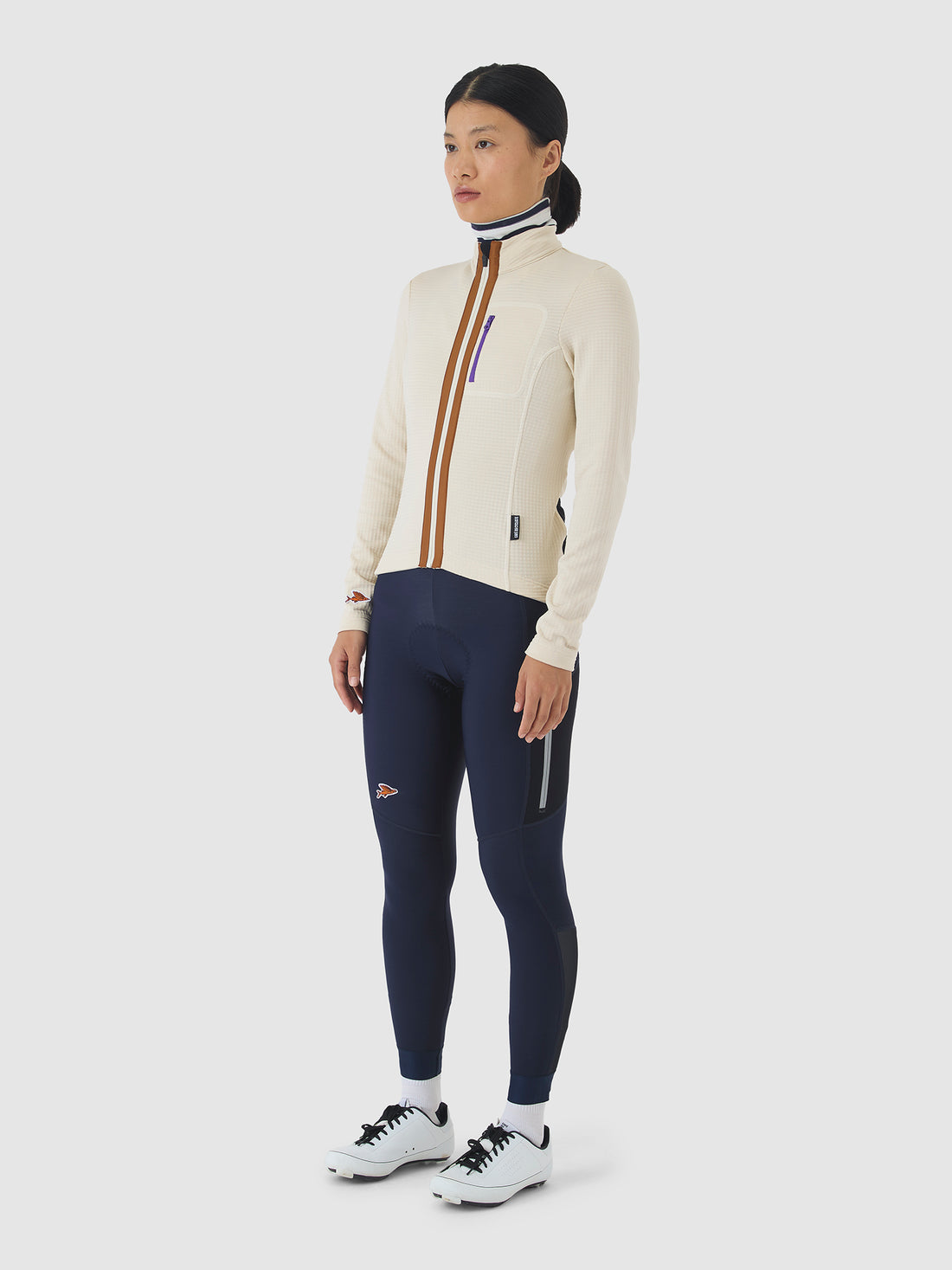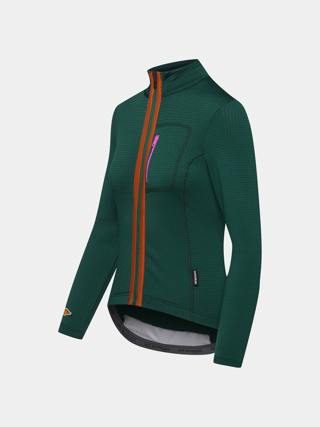 A midweight Audax jersey for going the distance in cooler temperatures. With an Italian-milled fabric spun from recycled polyester, its waffle-textured ‘air channel’ structure is adaptable enough for long-distance efforts when shifts in temperature can make or break a ride. Wind-blocking elements help to retain warmth, and our signature oversized mesh drop pocket is ideal for extra layers, tools or nutrition. And a neat chest zip pocket fits valuable items within easy reach on the go.