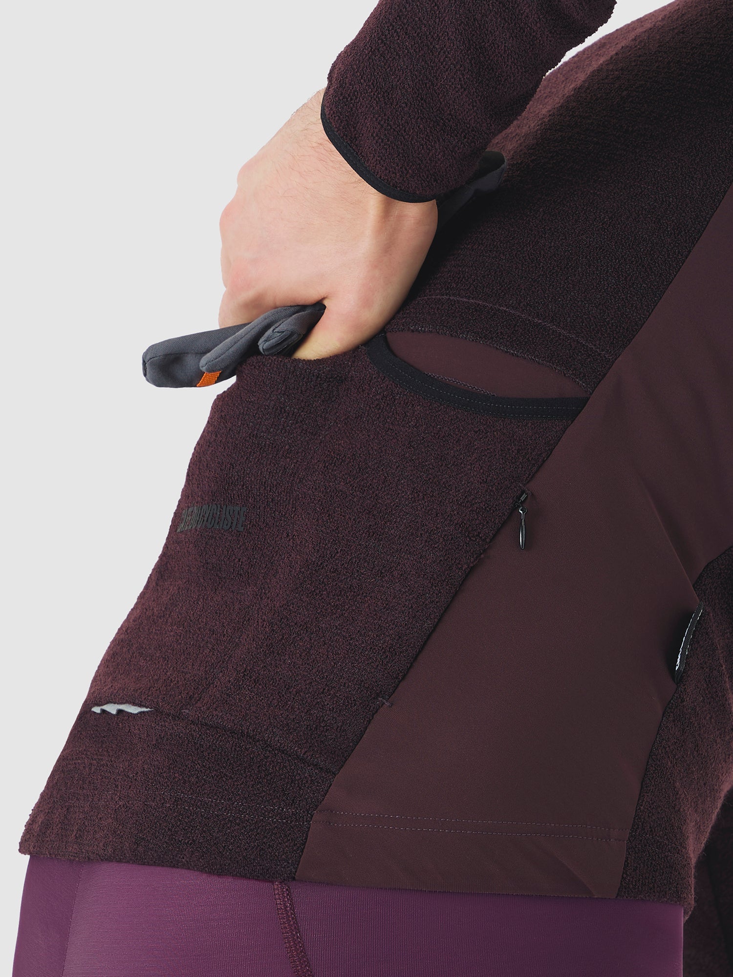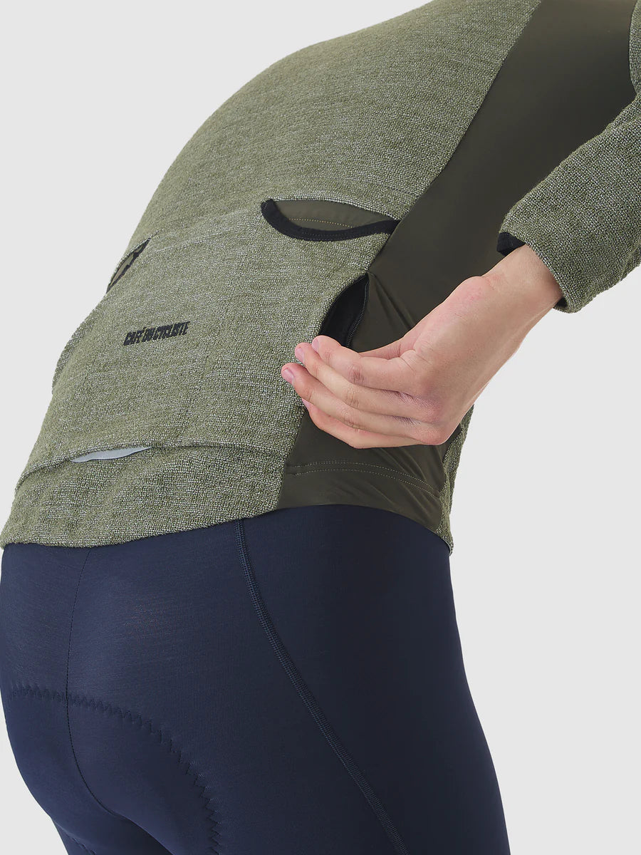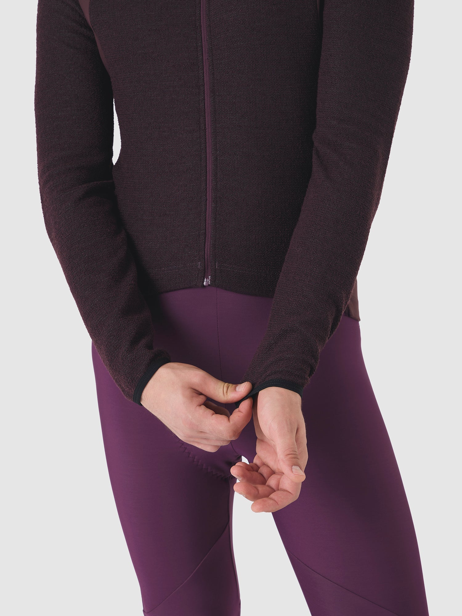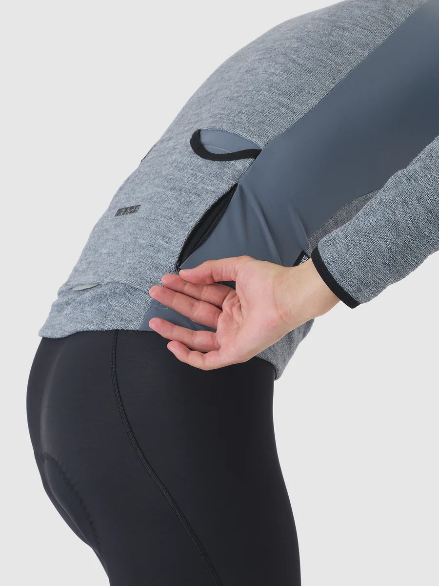 Marguerite is built from a high-wicking merino blend to ensure exceptional performance on colder rides. The fabric has a technical, textured knit that provides added warmth and softness while remaining breathable and lightweight. Meanwhile, side and shoulder panels offer extra stretch for a close on-the-bike fit.