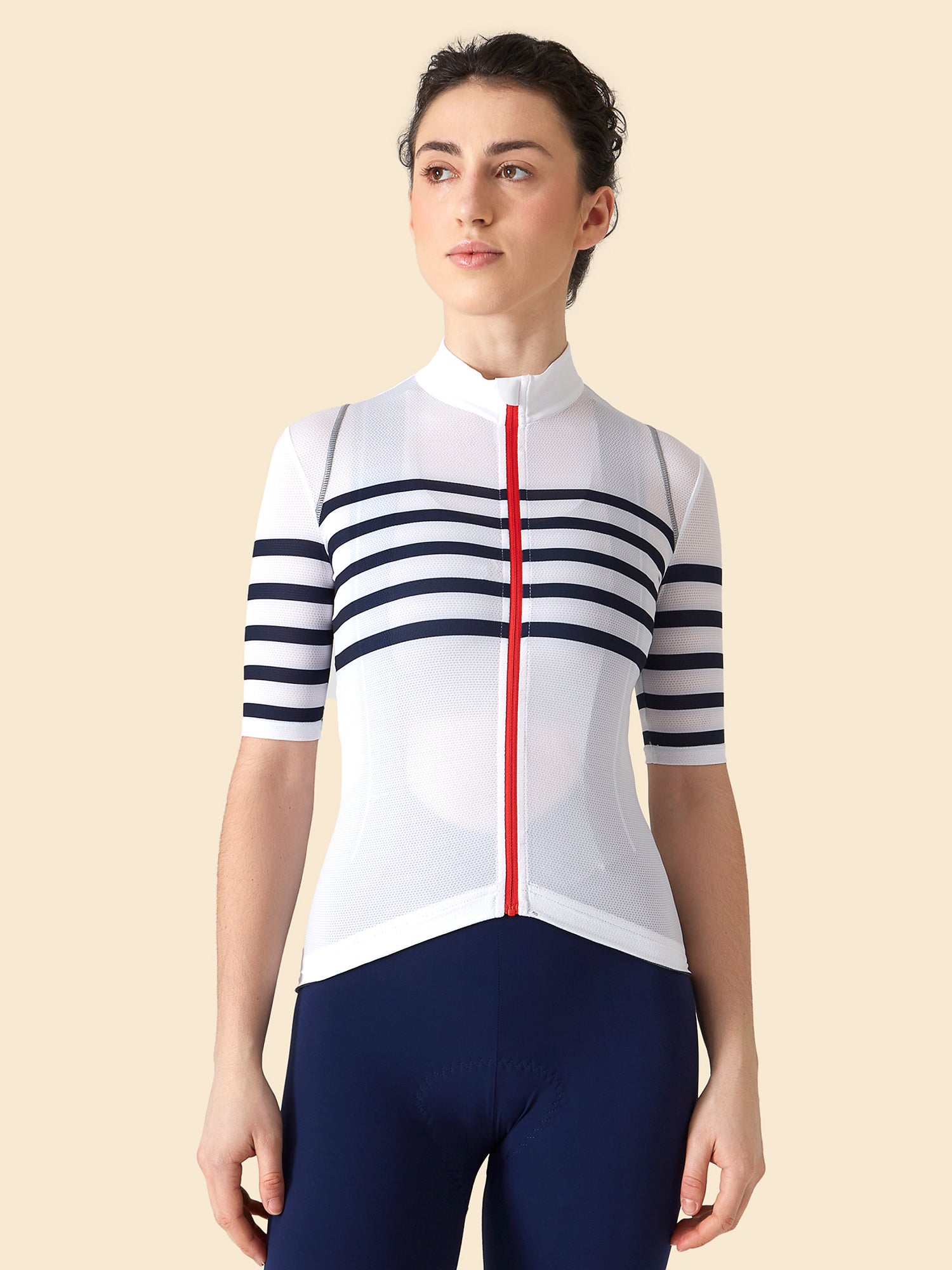 Part of our long-distance Audax collection, the super-light Mona is built for big summer riding. The high-wicking and fast-drying semi-mesh fabric provides exceptional ventilation, aiding core temperature control when the going gets tough and the mercury rises. Mona features our unique oversized mesh drop pocket, providing storage options for extended rides, and reflective detailing to help you be seen as the sun goes down.