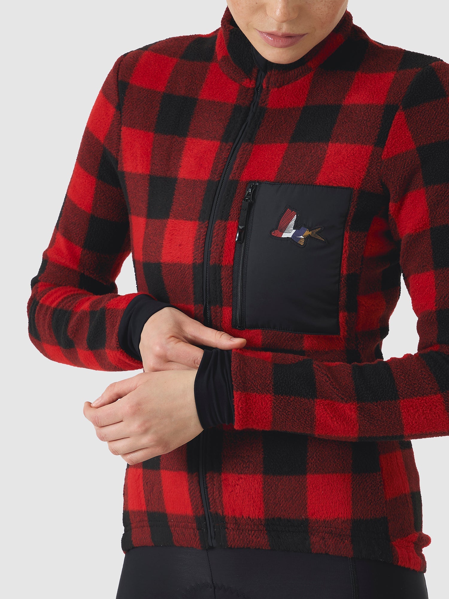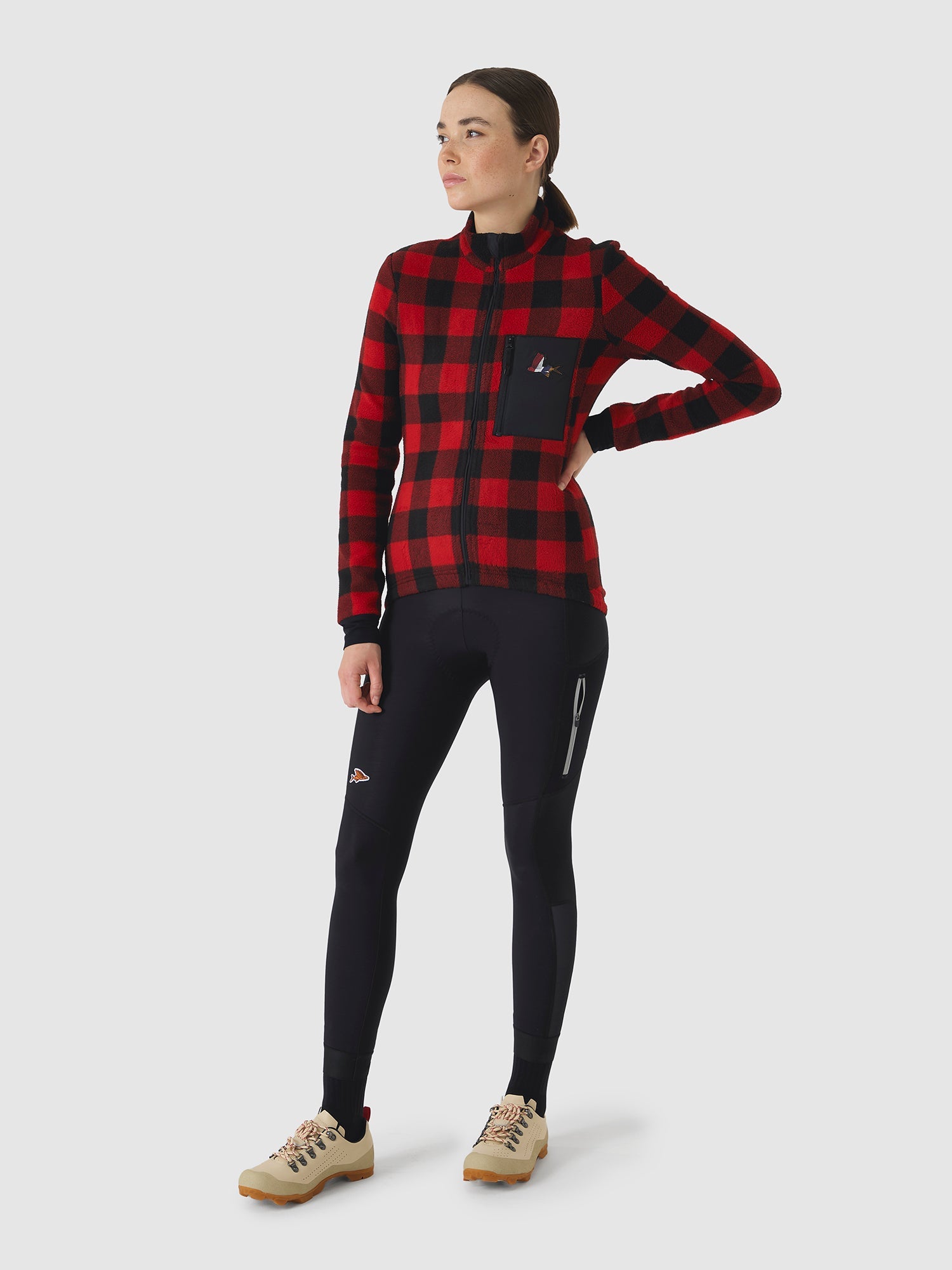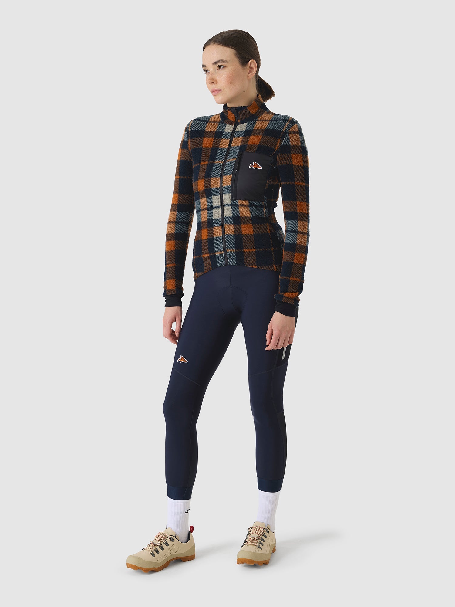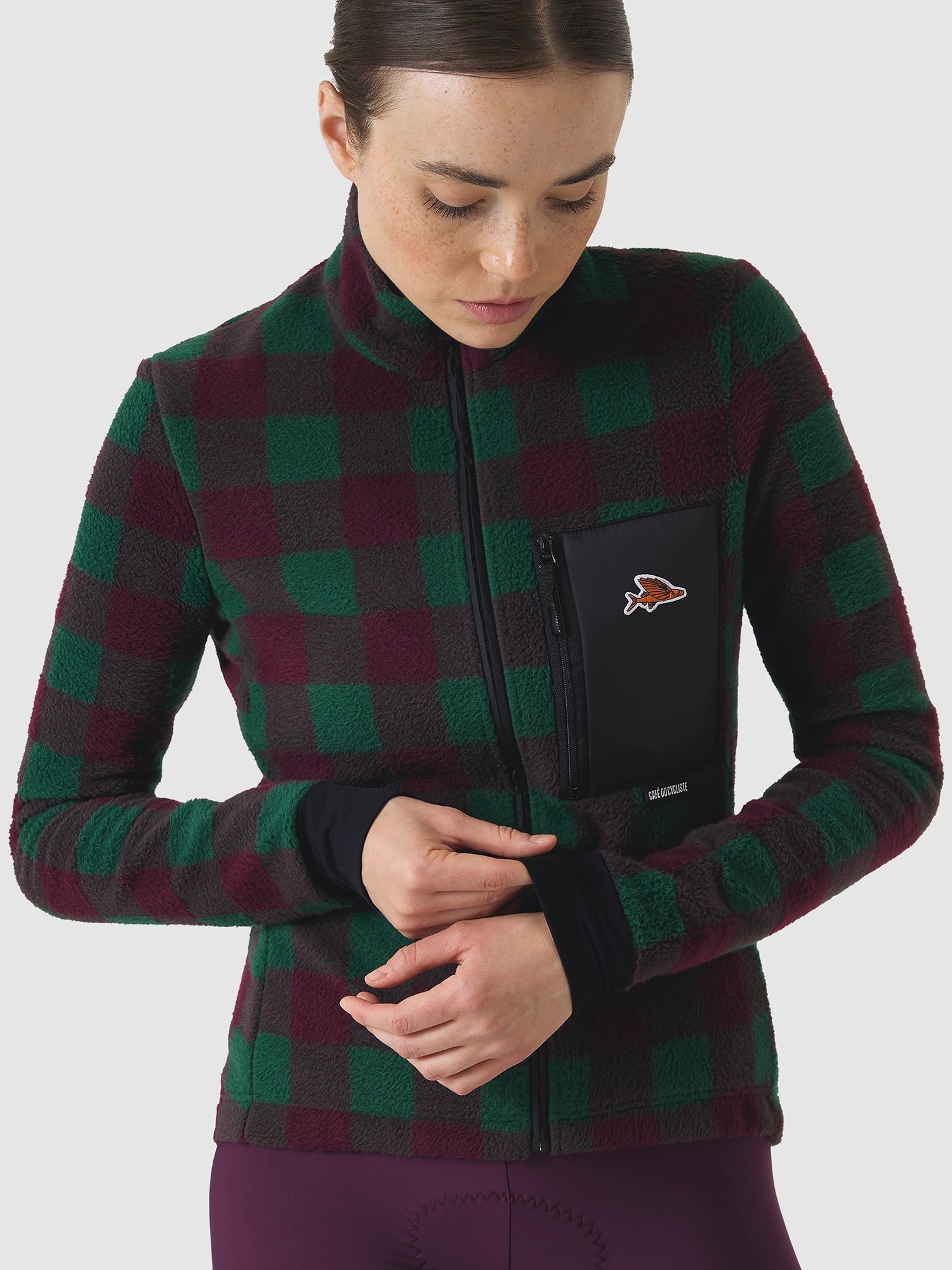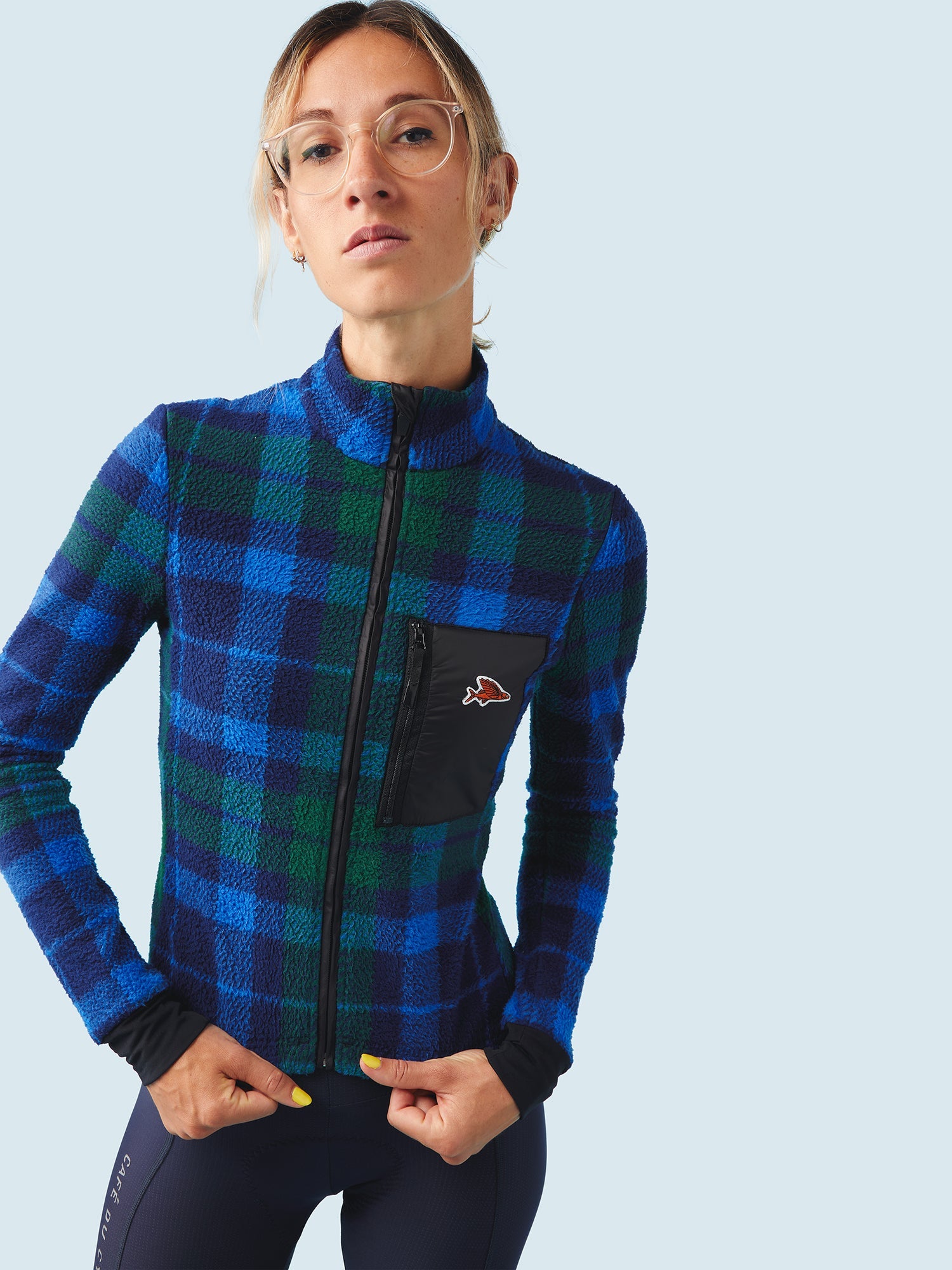 Designed for freedom on unbeaten tracks, Solange offers exceptional riding performance matched with signature gravel style. The fleecy recycled fabric features a classic outdoor-inspired jacquard check, and it includes added stretch for a closer fit, effectively trapping air against the body to provide a layer of insulation in cooler conditions. Additional styling details include a chest patch pocket for valuables, a reflective element for added safety in poor light conditions and our Flying Fish motif.