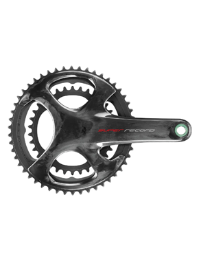 The NEW Super Record chainset has a more aerodynamic design than the previous version, with the carbon spider stretching all the way up to the chain ring, creating a cleaner more aesthetically pleasing design. The hollow carbon construction offers a low weight without sacrificing stiffness or reliability. The chainring bolt design has also changed from four to eight, which enhances the chainsets stiffness further. The chainset is available in four sizes and three chaining combinations.
