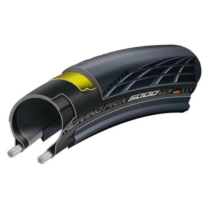 The Grand Prix 5000 is the best all-rounder in the field, brought to a whole new performance level. Ride faster, more comfortably, and with increased puncture protection. Its Active Comfort Technology absorbs vibrations and smooths your ride. Lazer Grip technology, designed to make you one with the road, features a lasered micro profile structure that expands over the tire’s shoulder and provides outstanding cornering. The Vectran Breaker is lighter, more flexible and protects more effectively against cuts than comparable nylon. With incredible tear resistance at a very low weight, it possesses exactly the right properties to be a premium puncture protection insert, while not adversely affecting rolling resistance. The Grand Prix 5000—made to make you better.