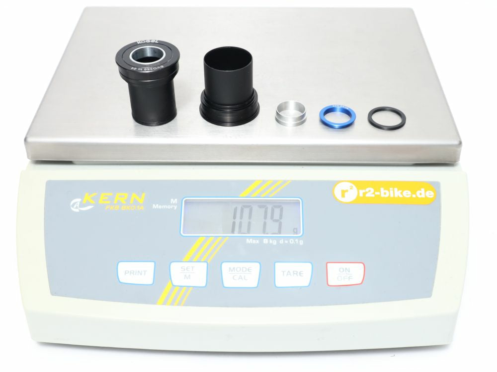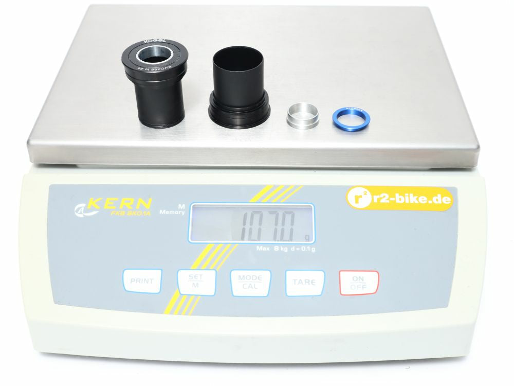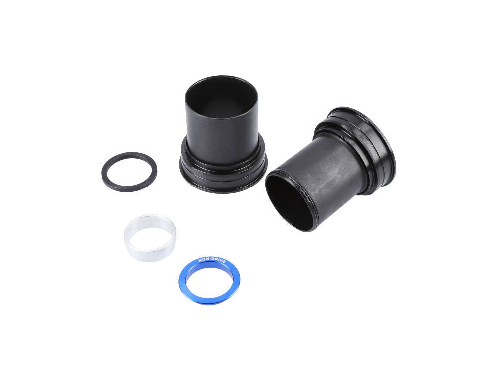 With this bottom bracket, cranks with a 24 mm shaft fit into frames with 386EVO bottom bracket housings. The reduction sleeves required to mount SRAM GXP cranks are included with the bottom bracket.