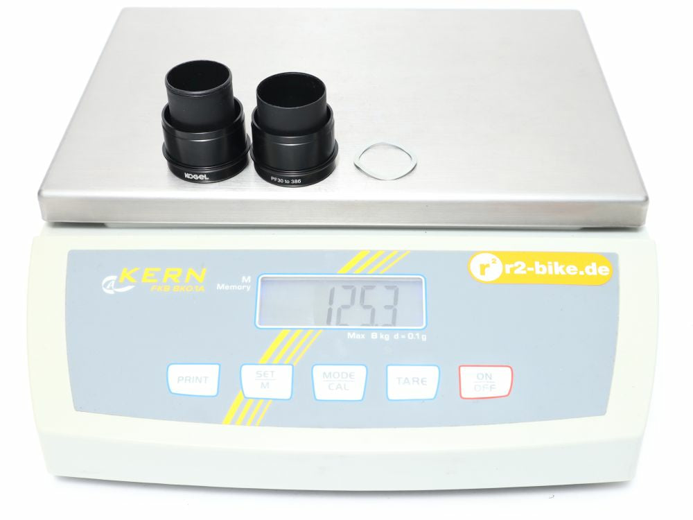This bottom bracket enables the installation of cranks with a long 30 mm shaft in frames that have a PF30 bottom bracket housing. By moving the bearings outwards, the system rigidity is significantly increased compared to solutions with many spacers. It fits Rotor 30 mm, RaceFace, Easton, 386EVO and Campagnolo Over Torque. Normal BB30 cranks with short shafts, Specialized FACT etc. DO NOT fit! Please check before buying whether your crank has a sufficiently long shaft.