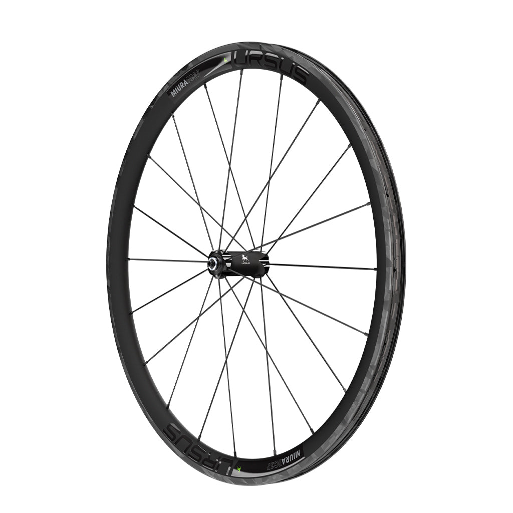 MIURA TC37 carbon wheels are fitted with a new pair of Ursus alloy hubs, with high-rolling smooth ball bearings, meticulously hand-assembled by our mechanics and checked with special optical-controlled machines before being mounted on the wheels. This model is also available in the disc brake version MIURA TC37DISC.