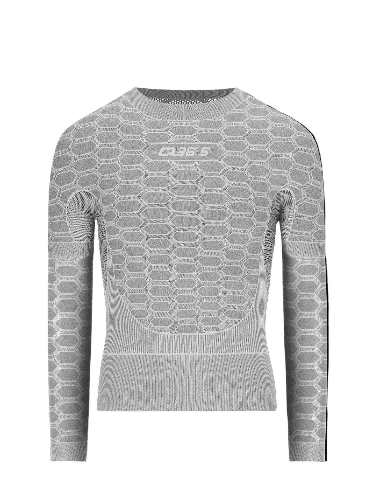 The first and most striking characteristic of the Q36.5Base Layer 3 – recommended for temperatures as low as 8°C - is its extraordinary softness and elasticity that allow the garment to stretch perfectly to the contours of your body for that invisible, next-to-body feeling. Combining this with our signature advanced body mapping, which uses multiple integrated structures and densities to accommodate the different sweat zones of the body, and a 100% seamless construction with an unhemmed finish, gives you a garment that is both high performing and practically indestructible even after years of use.
