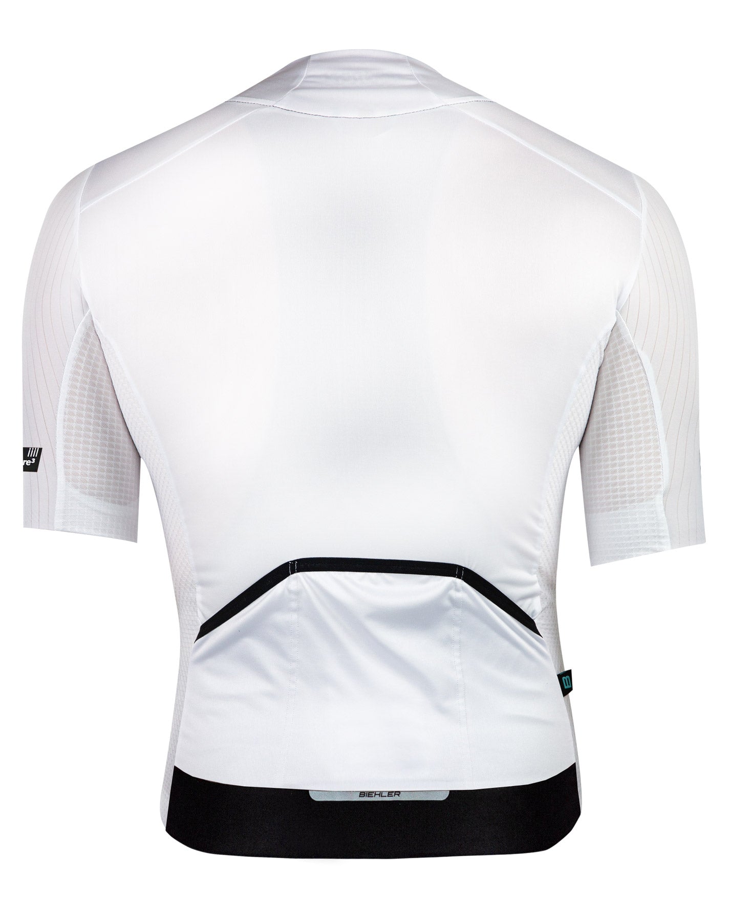 The contemporary design emphasizes crisp lines and bold colors. The light and breathable fabrics are quick drying and make this jersey a versatile garment for your daily ride. The fabric is equipped with an antibacterial finish to inhibit odour formation. Outstanding comfort is guaranteed due to stretchable and soft materials which offer unparalleled freedom of movement. The jersey is equipped with sun protection factor UV 50+. The advanced sleeve material with an inner silicone print has excellent aerodynamic properties and guarantees a superior comfortable fit. The sleeves fit tightly without restricting and the silicon gripper ensures they stay in place.